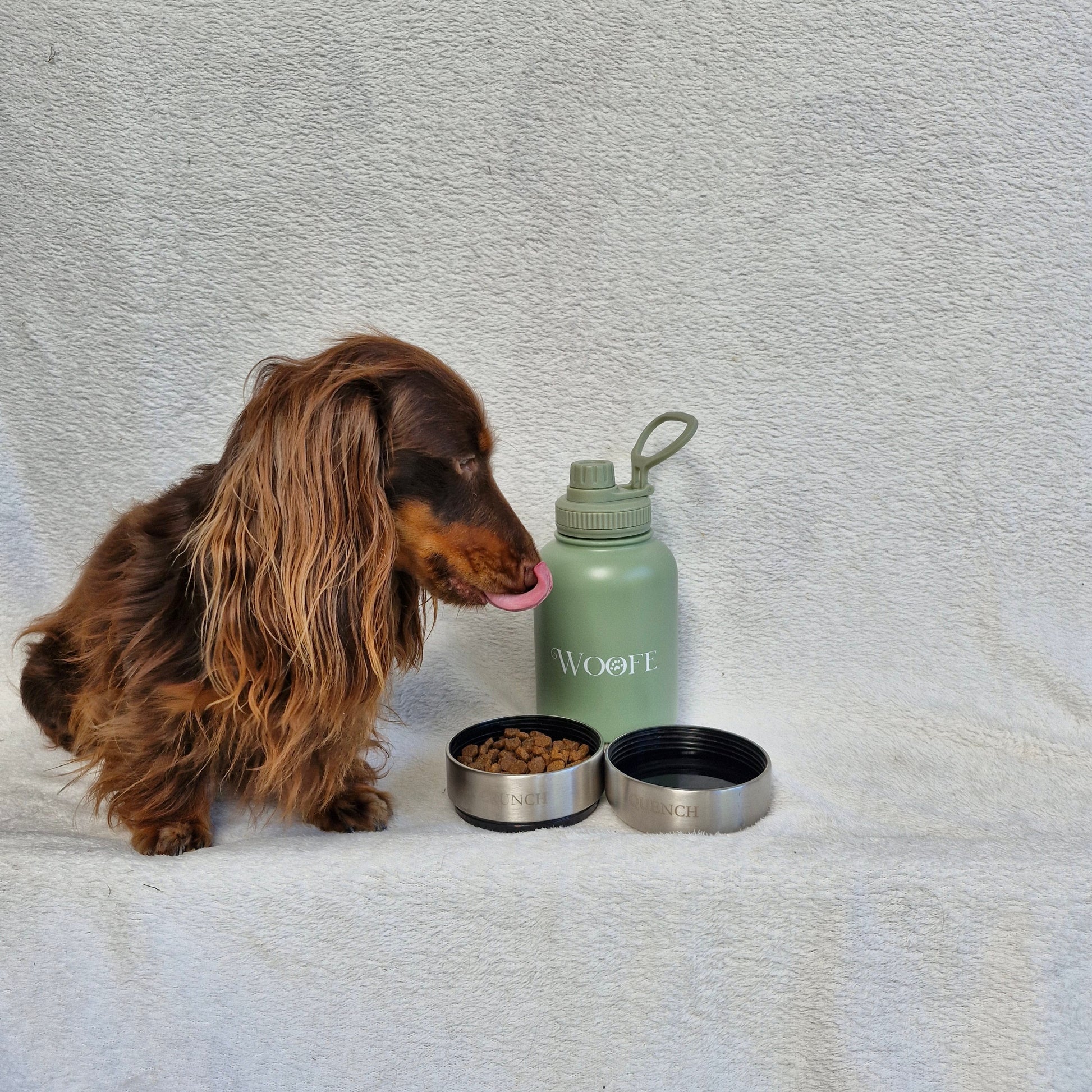 Stay prepared for every adventure with the Crunch & Quench Water Bottle — the ultimate 3-in-1 hydration solution for you and your dog. This cleverly designed bottle combines a water bottle, water bowl, and food bowl in one sleek, space-saving design.