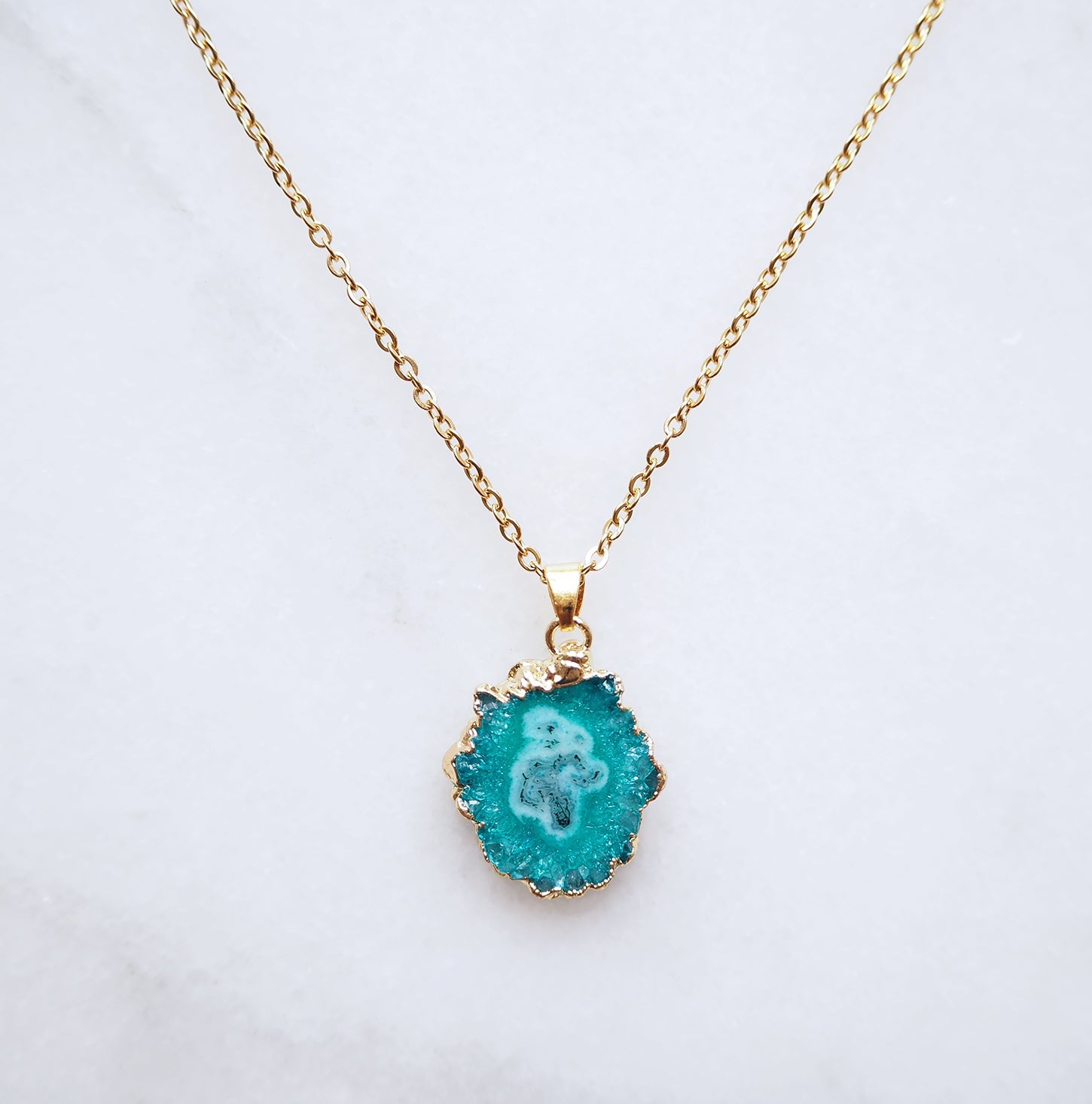 Druzy Agate Necklace is the perfect jewellery if you want to keep your crystal close to your heart to always stay connected to the energy of the crystal.