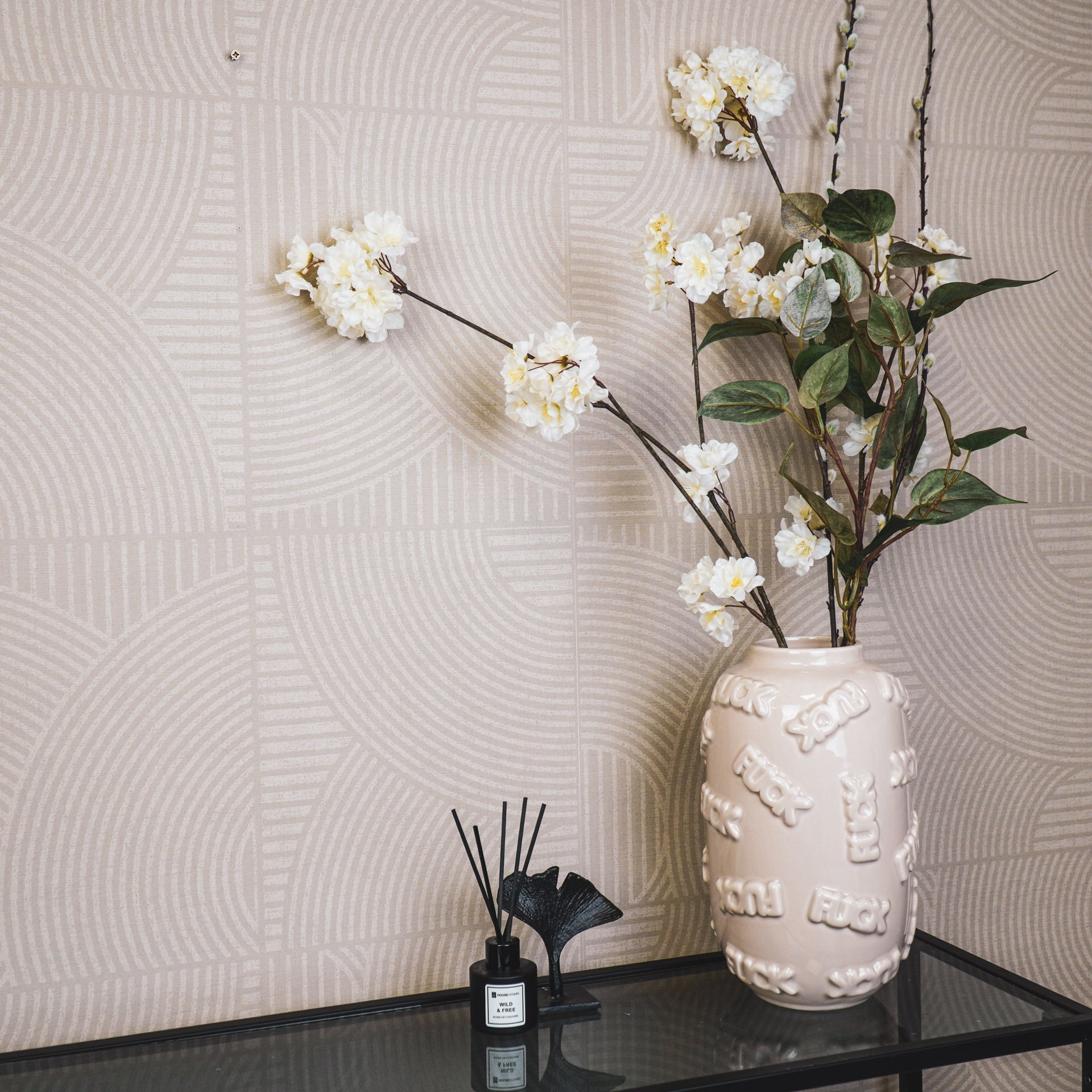 - Beige bloemenvaas met 'Fuck' design